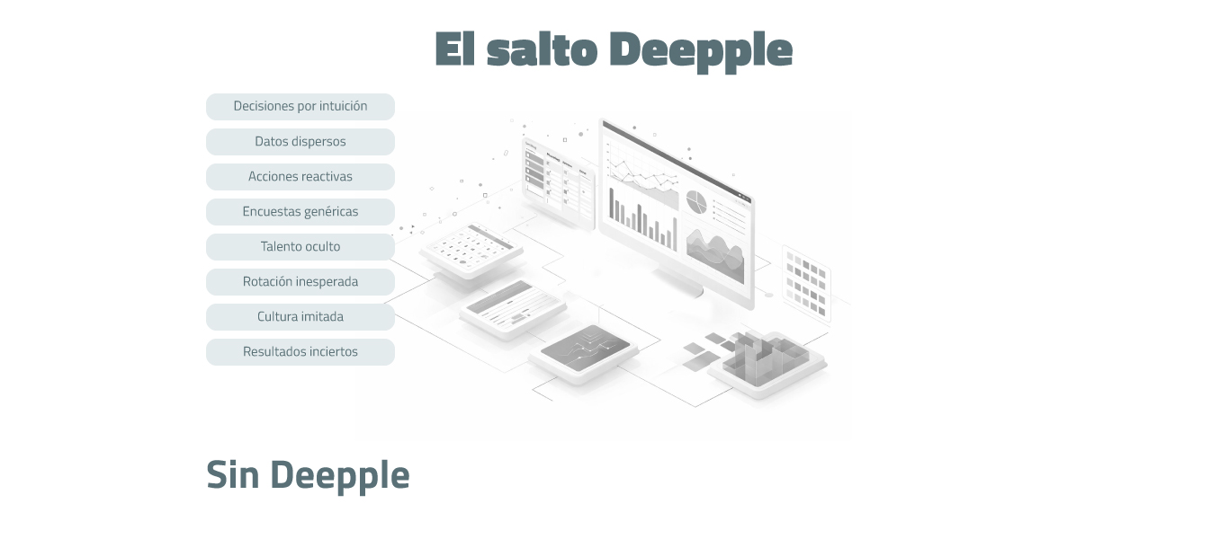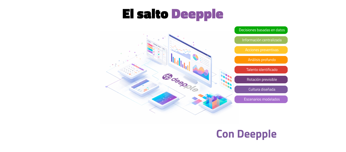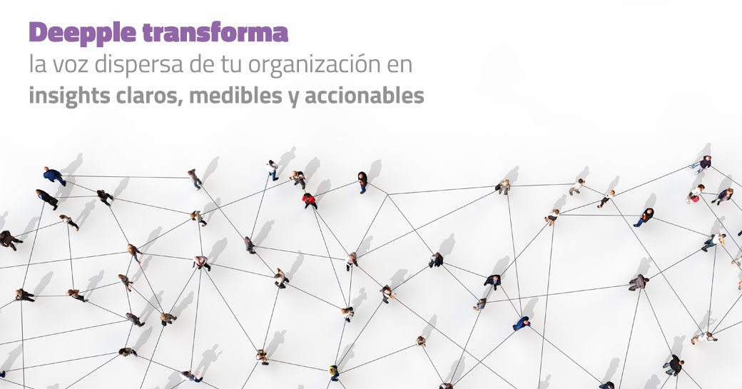 Deepple es una plataforma que ofrece soluciones de inteligencia organizacional a través de people analytics para comprender y predecir el comportamiento humano dentro de las organizaciones, transformando percepciones en información accionable que ayuda a tomar decisiones sobre el talento.