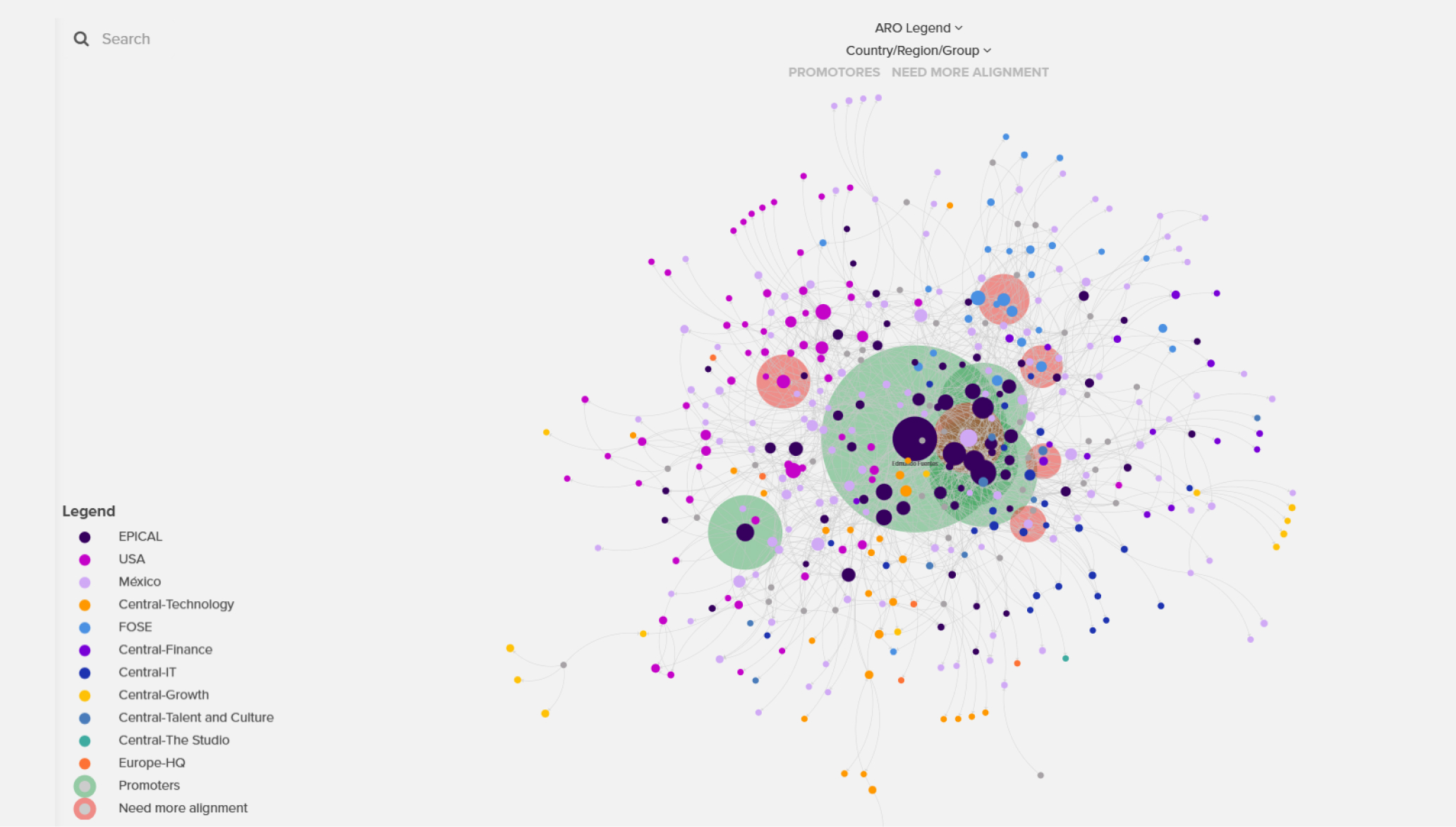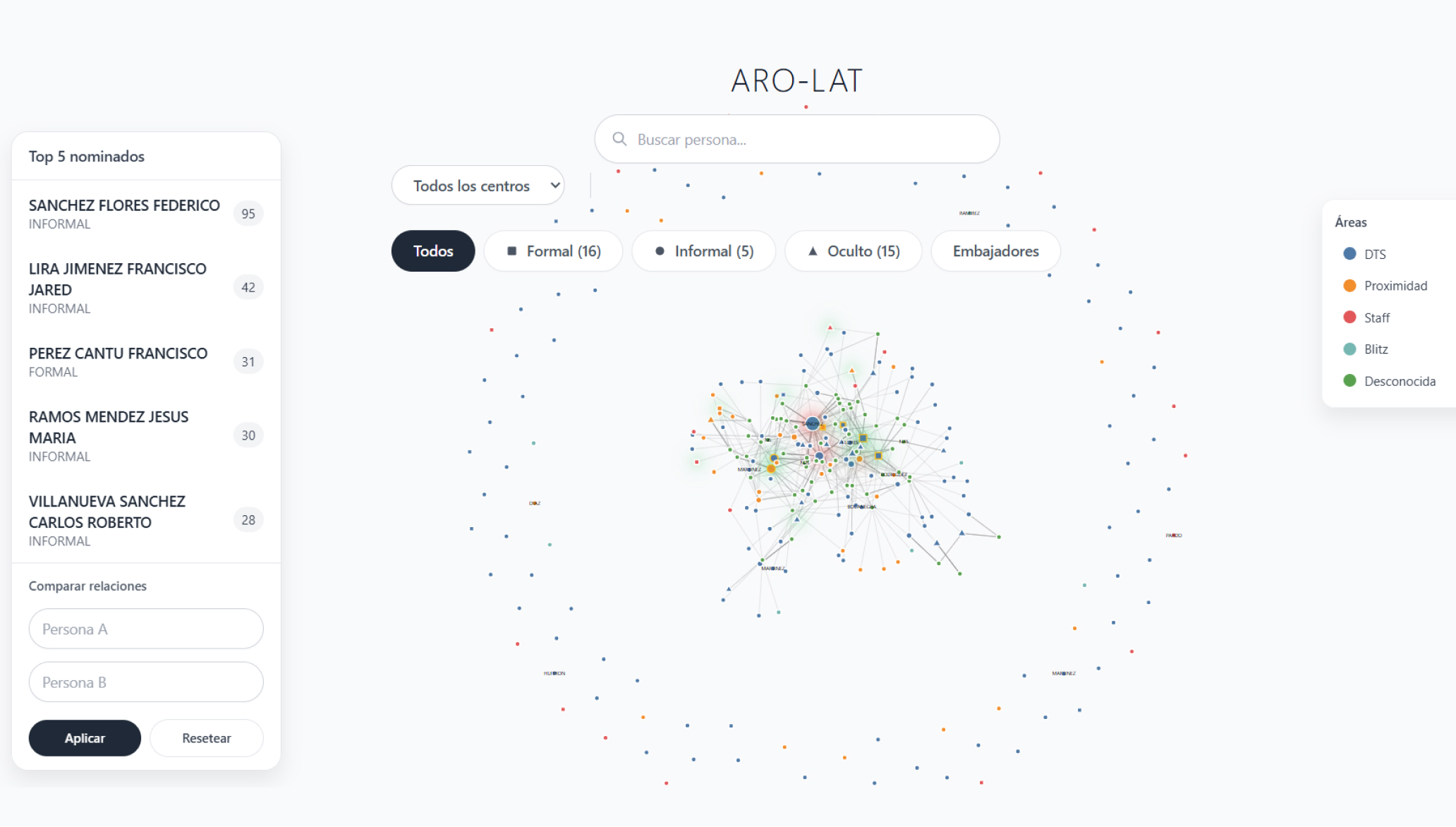 ARO no solo entrega métricas precisas, sino que muestra en tiempo real cómo se conectan e influyen las personas en todos los niveles.